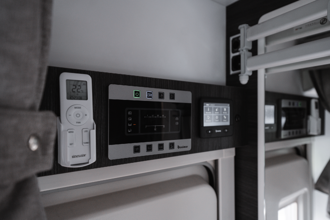 Za senco pred avtodomom skrbi velika tenda, za svetlobo pa zunanja luč. Avtodom vsebuje še bivalno klimo, nosilec koles, sončne celice, opremo za kuhinjo, vzvratno kamero, zimski paket.